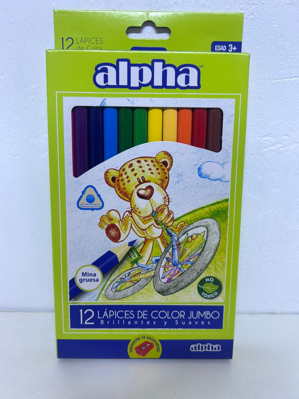 ✨Caja de 12 colores JUMBO forma triangulares ✨Mejor cobertura de color y suavidad ✨ Marca ALPHA